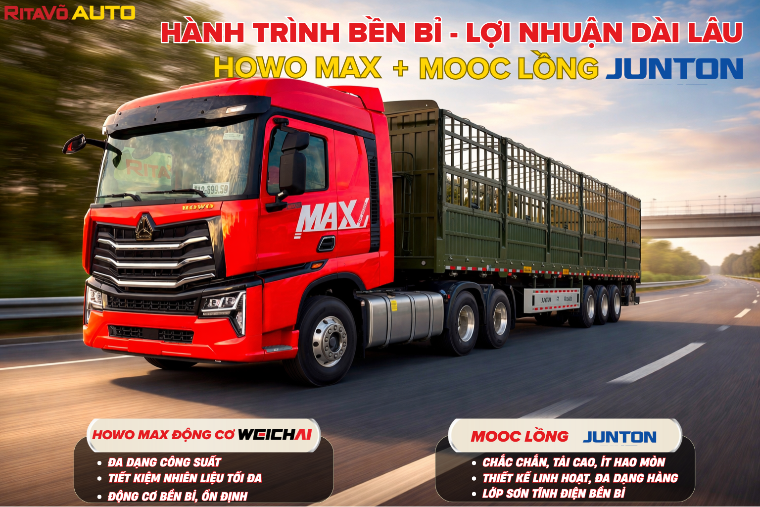Trong bối cảnh ngành vận tải ngày càng cạnh tranh về chi phí và hiệu suất, việc lựa chọn một tổ hợp xe đầu kéo và sơ mi rơ mooc phù hợp đóng vai trò then chốt. Bộ đôi HOWO MAX sử dụng động cơ Weichai kết hợp cùng mooc lồng Junton đang trở thành lựa chọn đáng tin cậy cho nhiều doanh nghiệp và cá nhân kinh doanh vận tải nhờ khả năng vận hành ổn định, tiết kiệm và linh hoạt.