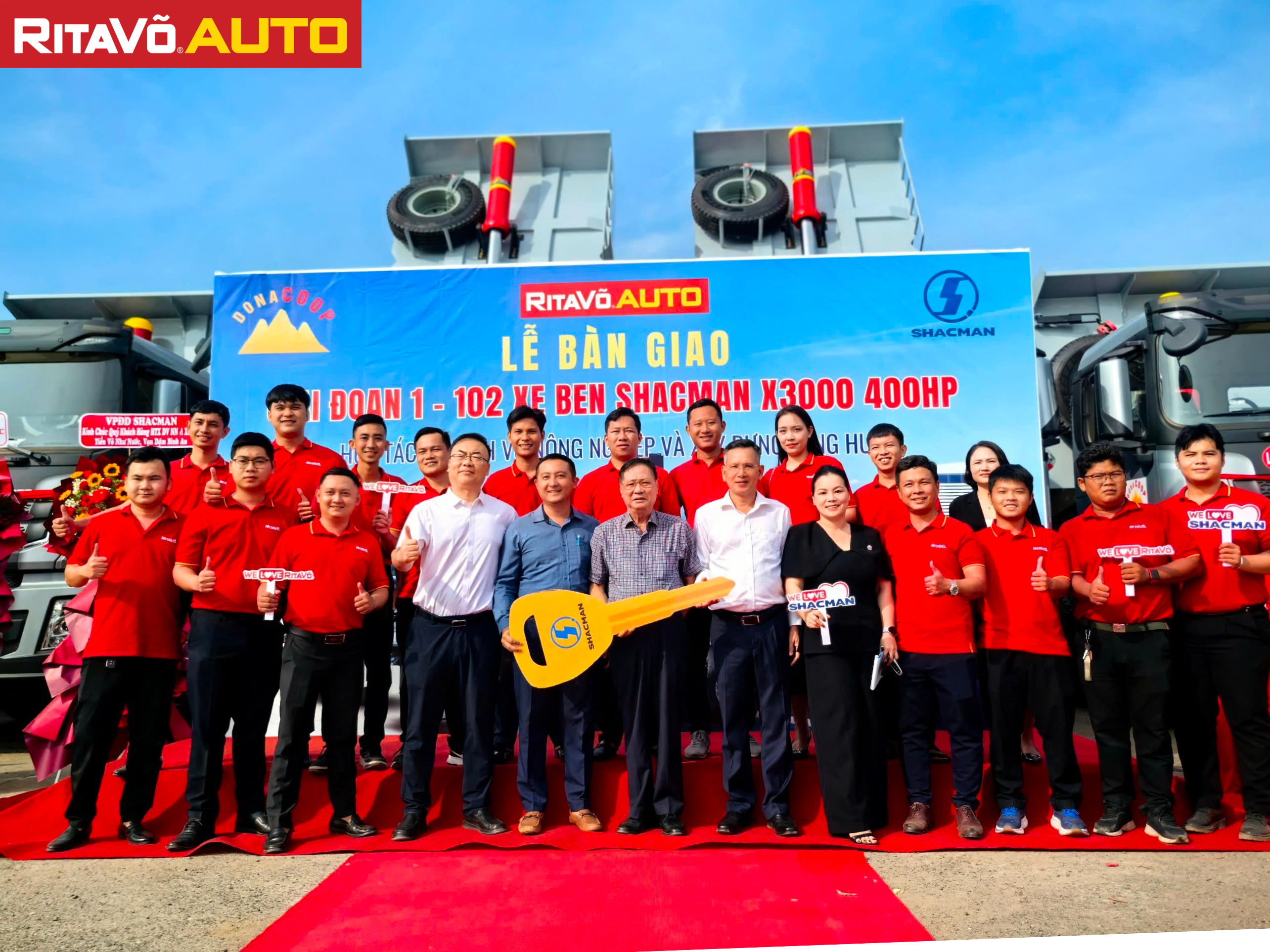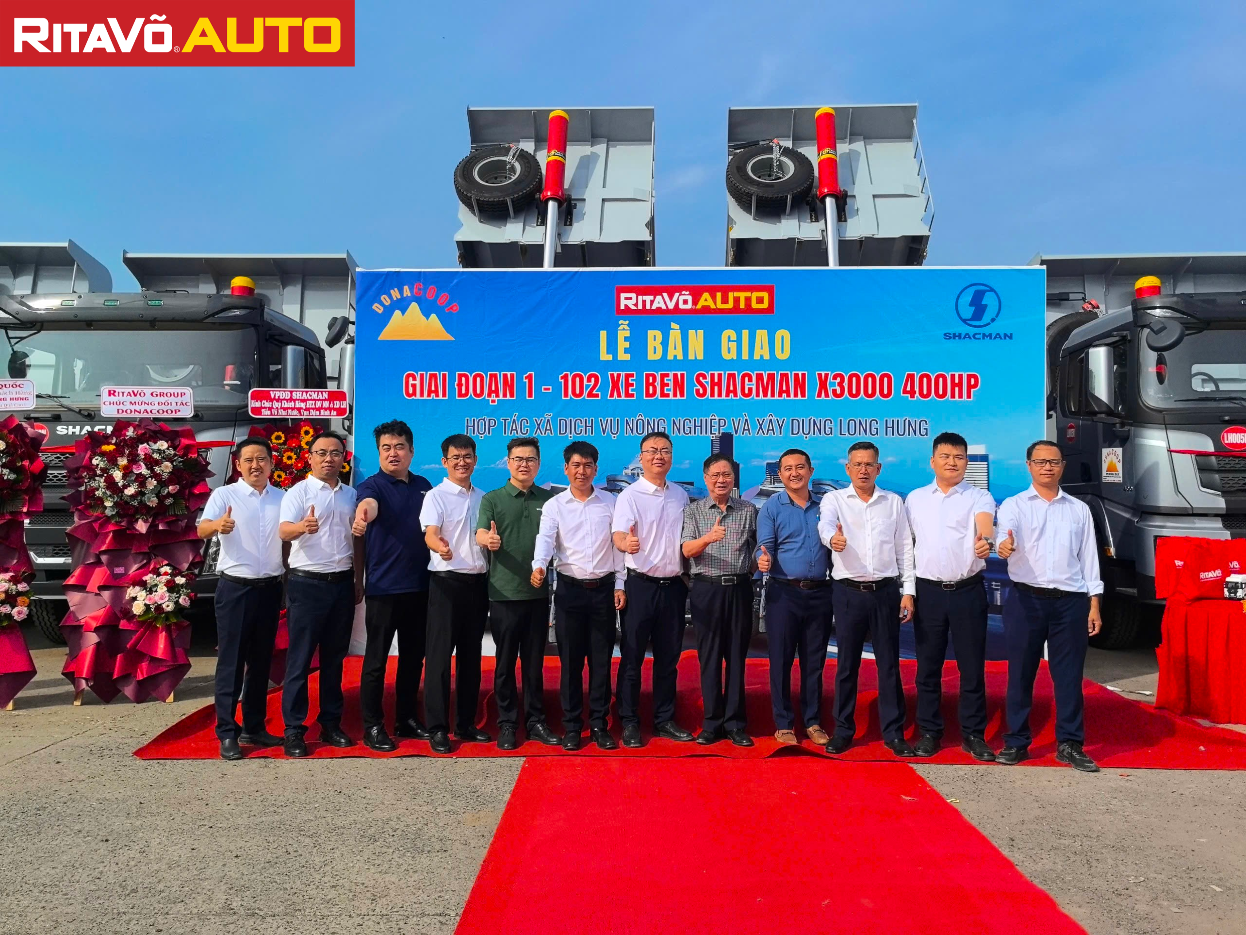 Rita Võ Auto trân trọng đánh dấu một cột mốc đặc biệt trong ngành vận tải khi chính thức bàn giao 102 xe ben Shacman X3000 400HP đến Donacoop – một đối tác chiến lược đã đồng hành cùng chúng tôi suốt 10 năm qua.