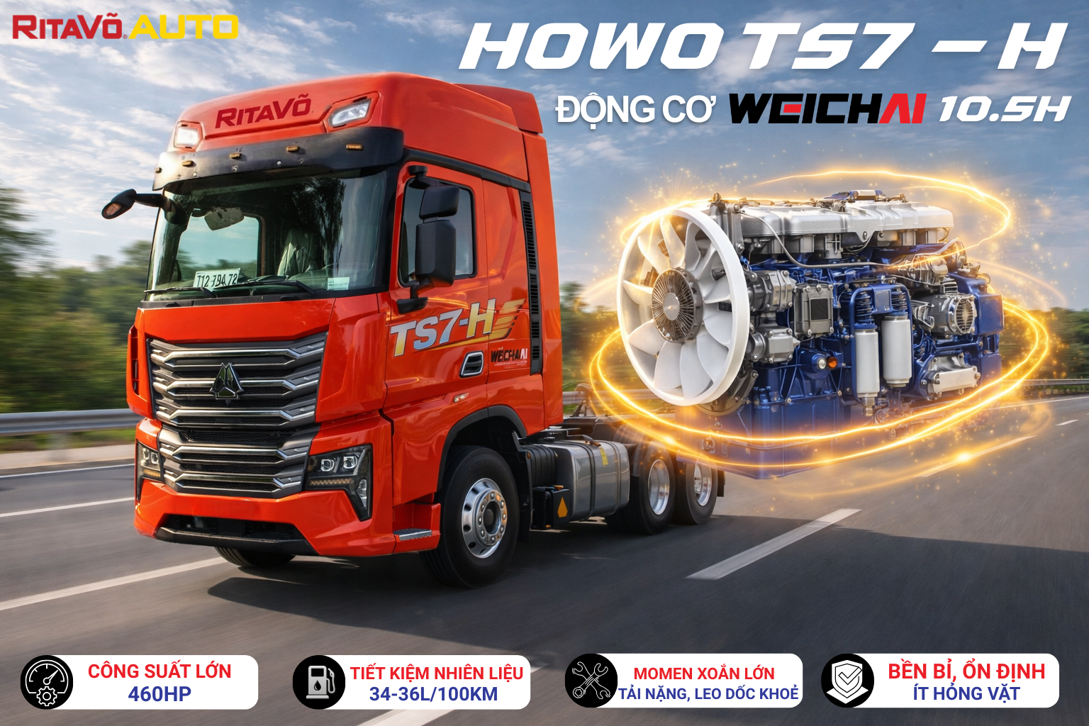 Khám phá HOWO TS7-H 460HP động cơ Weichai WP10.5H: tiết kiệm nhiên liệu, vận hành bền bỉ, chi phí thấp, giải pháp tối ưu cho vận tải đường dài.